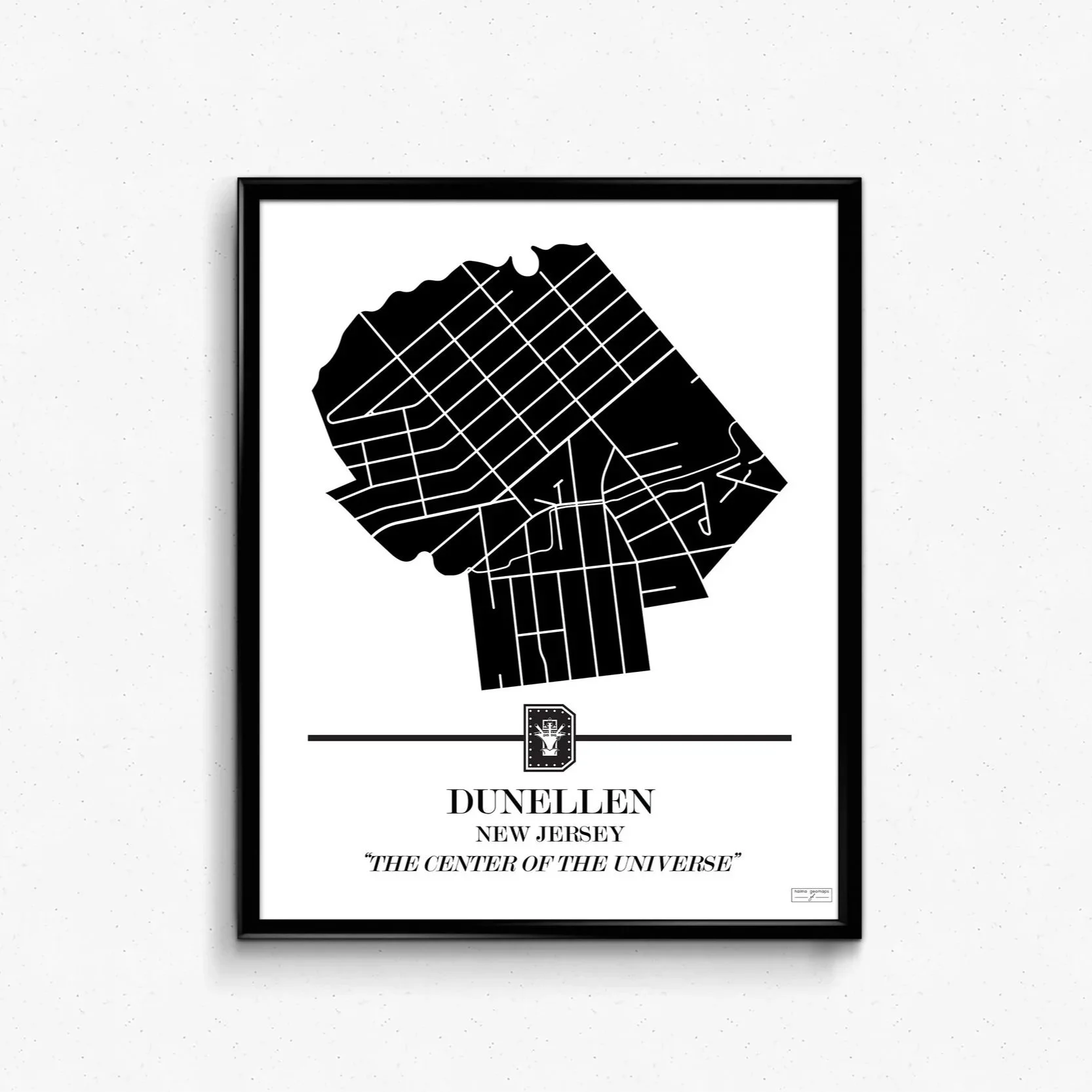A custom map made for Dunellen, NJ, which features a vector logo of Dunellen High School’s Destroyer mascot and a meaningful custom phrase.